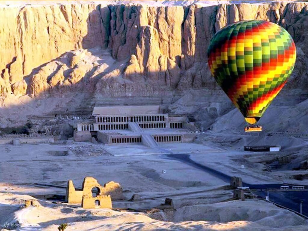 Imagine floating silently in the sky as the sun begins to rise, casting a golden glow over the Nile River and the ancient temples of...